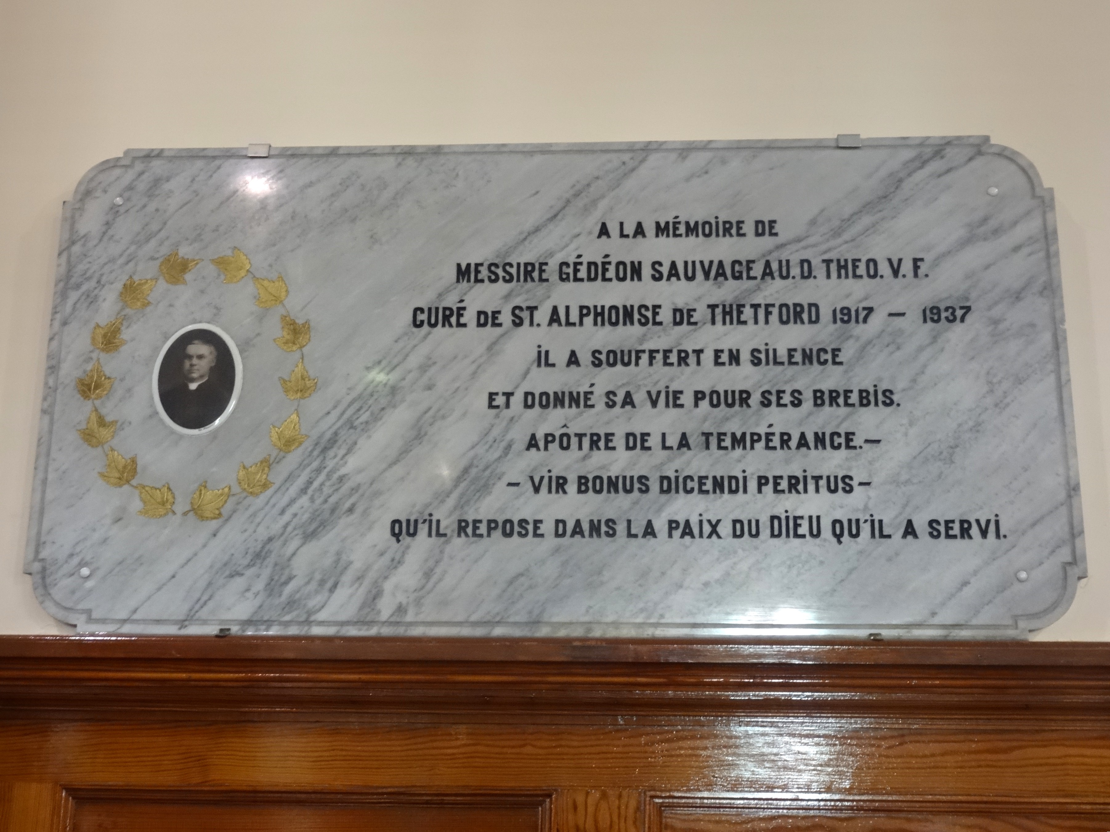 Plaque du curé Gédéon Sauvageau