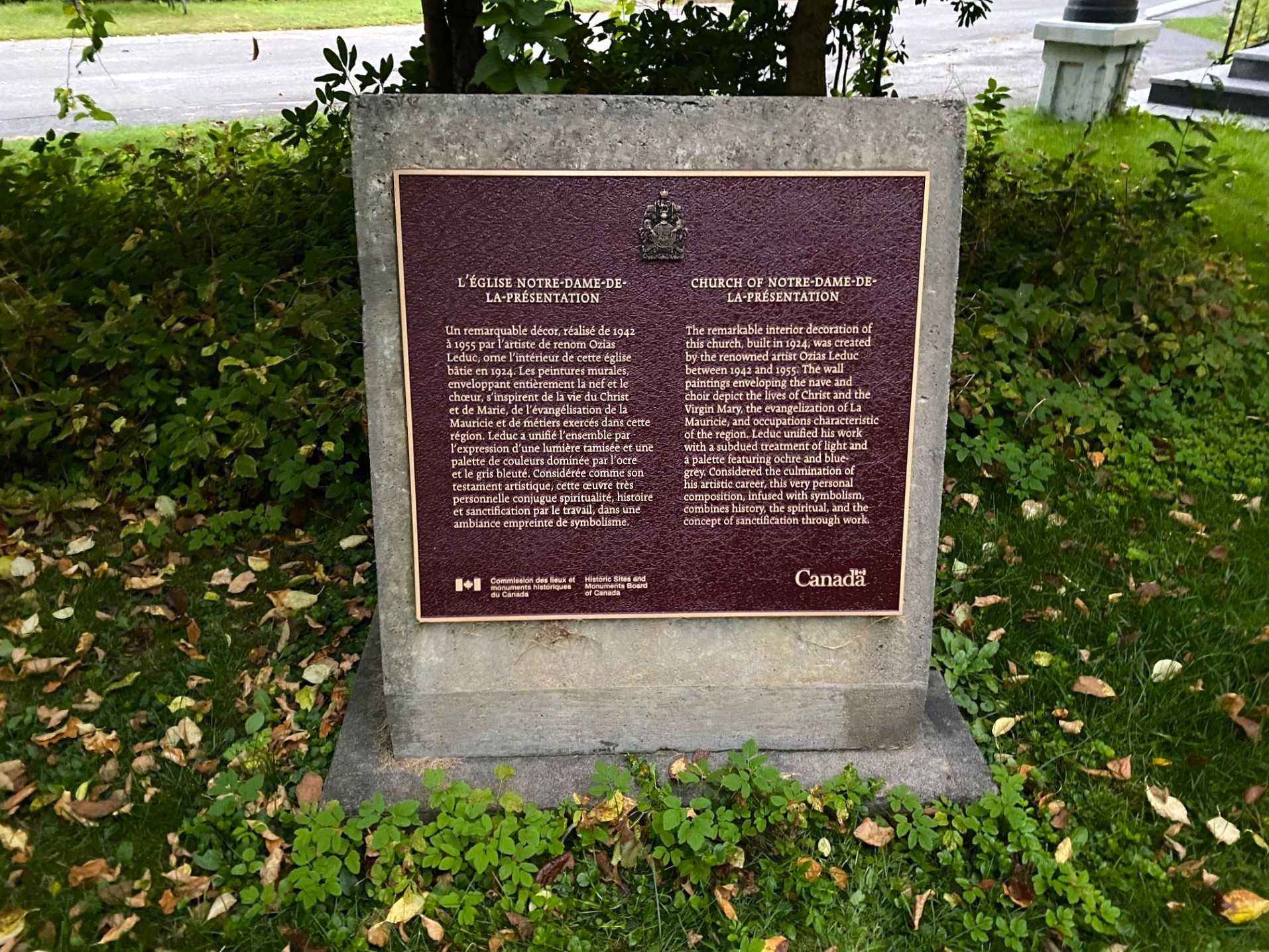 Le 16 juin 2005, Stéphane Dion, alors ministre de l'Environnement et responsable de Parcs Canada, révèle une plaque de la Commission des lieux et monuments historiques du Canada pour souligner l'importance historique nationale de l'église Notre-Dame-de-la-Présentation. « La commémoration de l'église Notre-Dame-de-la-Présentation à titre de lieu historique national du Canada permettra à tous les Canadiens et Canadiennes de mieux connaître l'oeuvre d'Ozias Leduc », a déclaré le ministre Dion.