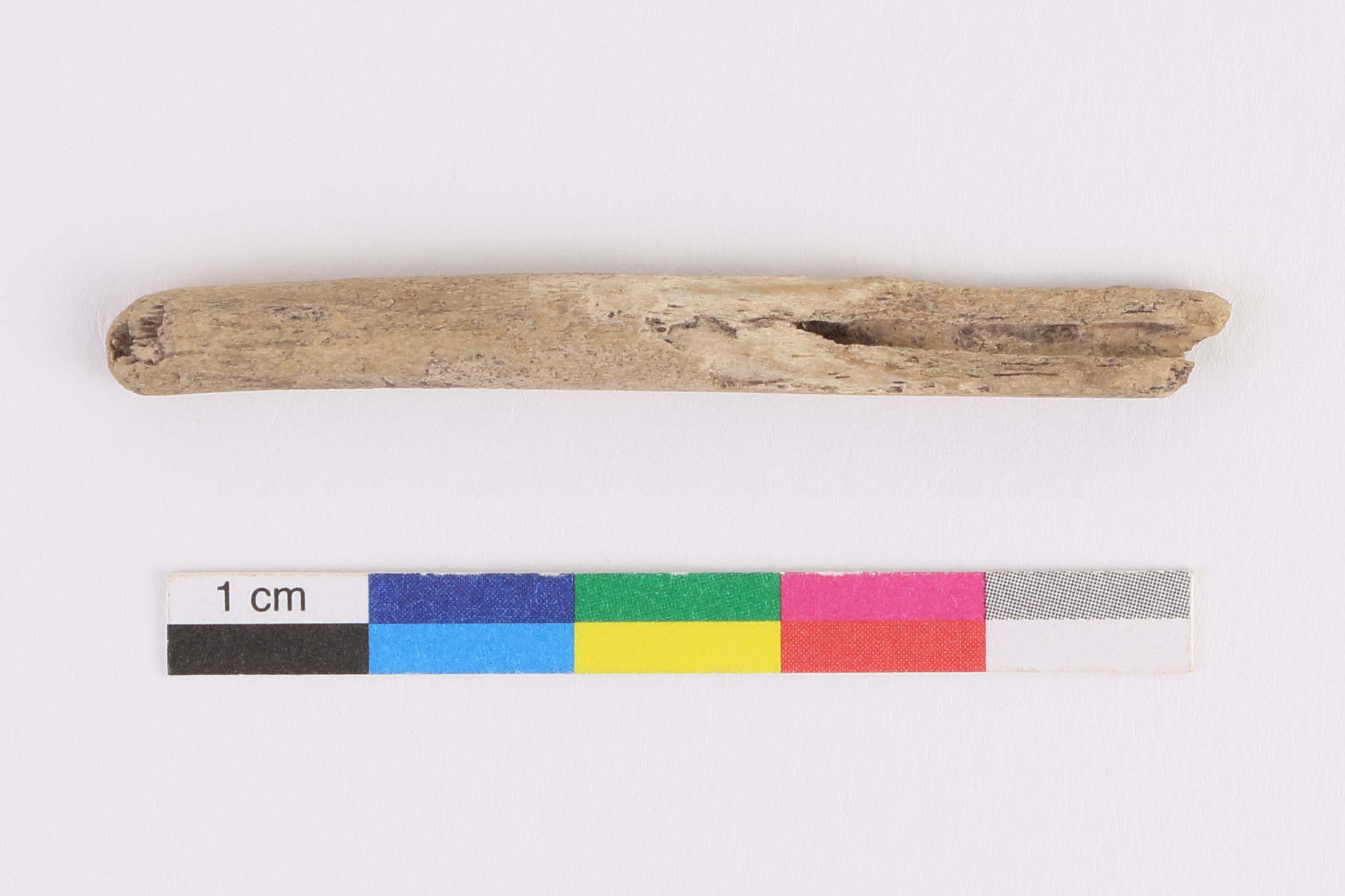 Le retouchoir est un outil lié au travail de la pierre qui serait associé au Sylvicole moyen tardif (1 500 à 1 000 ans avant aujourd'hui). Incomplet, l'objet est fait de matière dure animale, probablement un os. Il est étroit et allongé à la manière d'une petite baguette plutôt cylindrique avec une extrémité convexe, alors que l'autre est manquante en raison d'une cassure. De petites stries sont également visibles sur la surface de l'objet. L'objet a une longueur résiduelle de 5,5 cm et mesure 0,5 cm de largeur et 0,5 cm d'épaisseur.