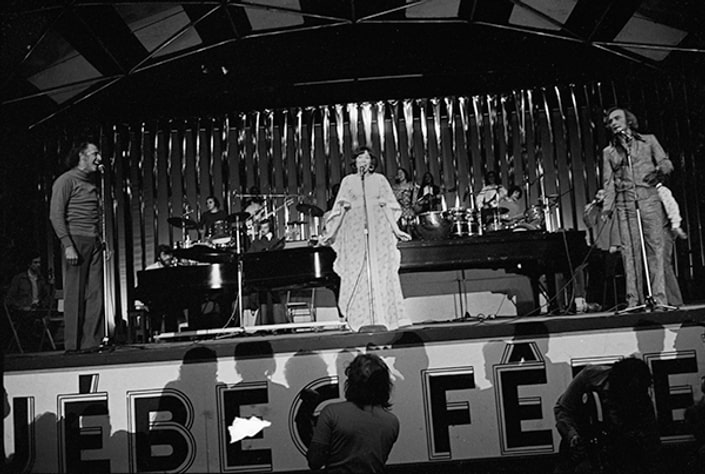 Sur la grande scène du lac aux Castors, le spectacle d'ouverture du 20 juin 1975 met en vedette Yvon Deschamps, Louise Forestier et Gilles Vigneault. Gaston Rochon, compositeur, pianiste et collaborateur de longue date de Vigneault, en assure la codirection musicale. À la suggestion d'Yvon Deschamps, le spectacle est intitulé « Happy Birthday », un choix qui s'inscrit dans un contexte politique marqué par les débats linguistiques. Les coanimateurs de la soirée souhaitent alors inviter les spectateurs à délaisser le traditionnel « Happy Birthday » et sa version traduite « Bonne fête » au profit d'une nouvelle chanson d'anniversaire originale en français.