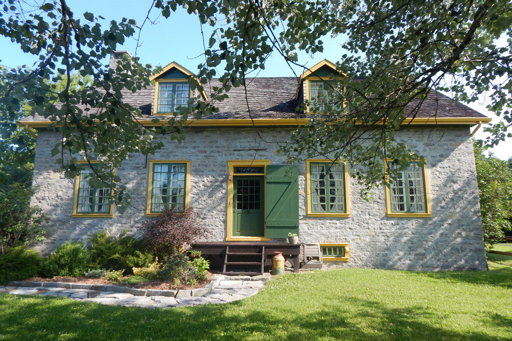 - ses éléments représentatifs de la maison rurale d'inspiration française, dont le plan rectangulaire, l'élévation d'un étage et demi, le toit à deux versants droits aux larmiers peu saillants couvert en bardeaux de cèdre, les fenêtres à battants à petits carreaux, le perron à l'arrière et la galerie à croix de Saint-André;