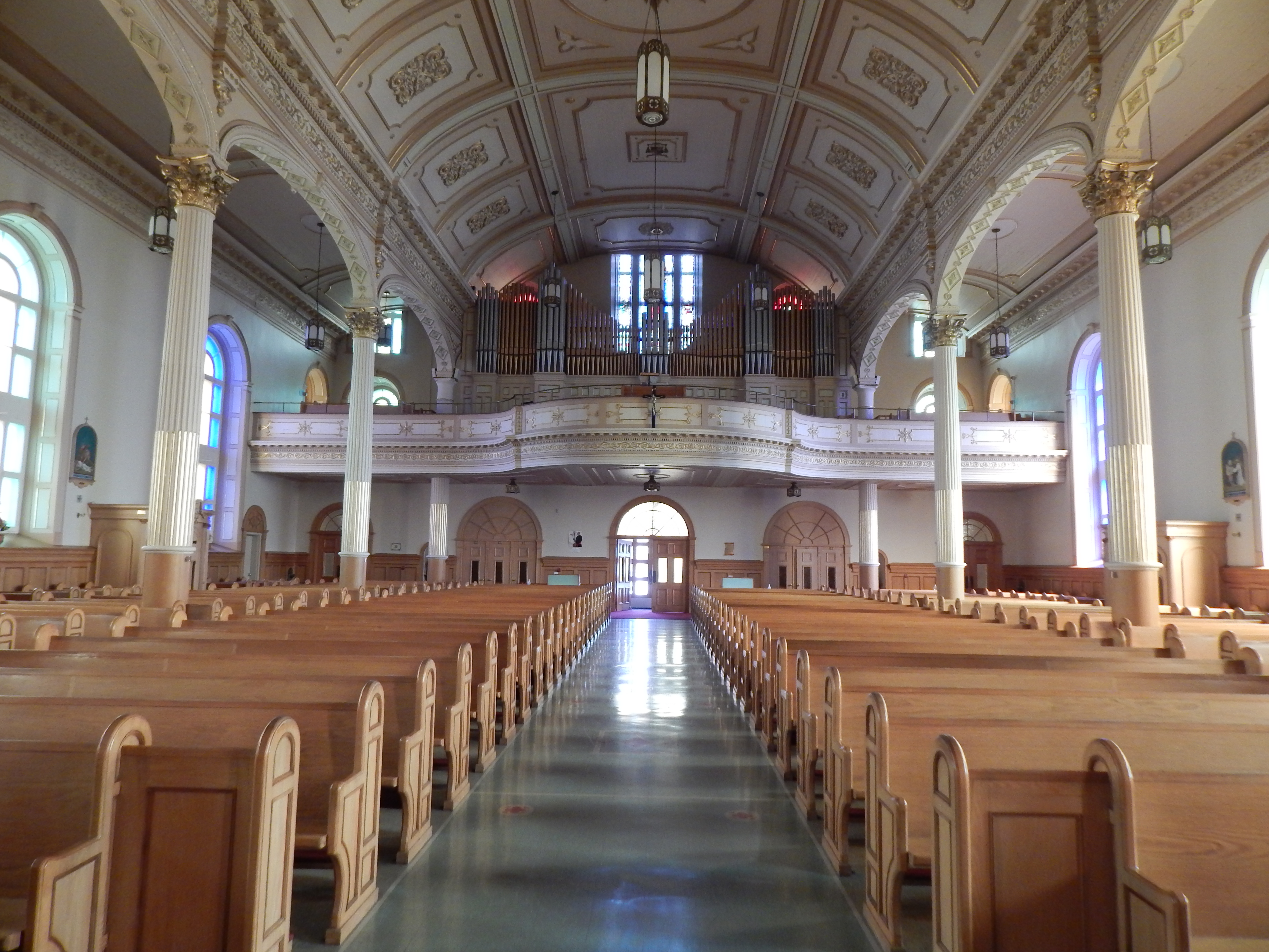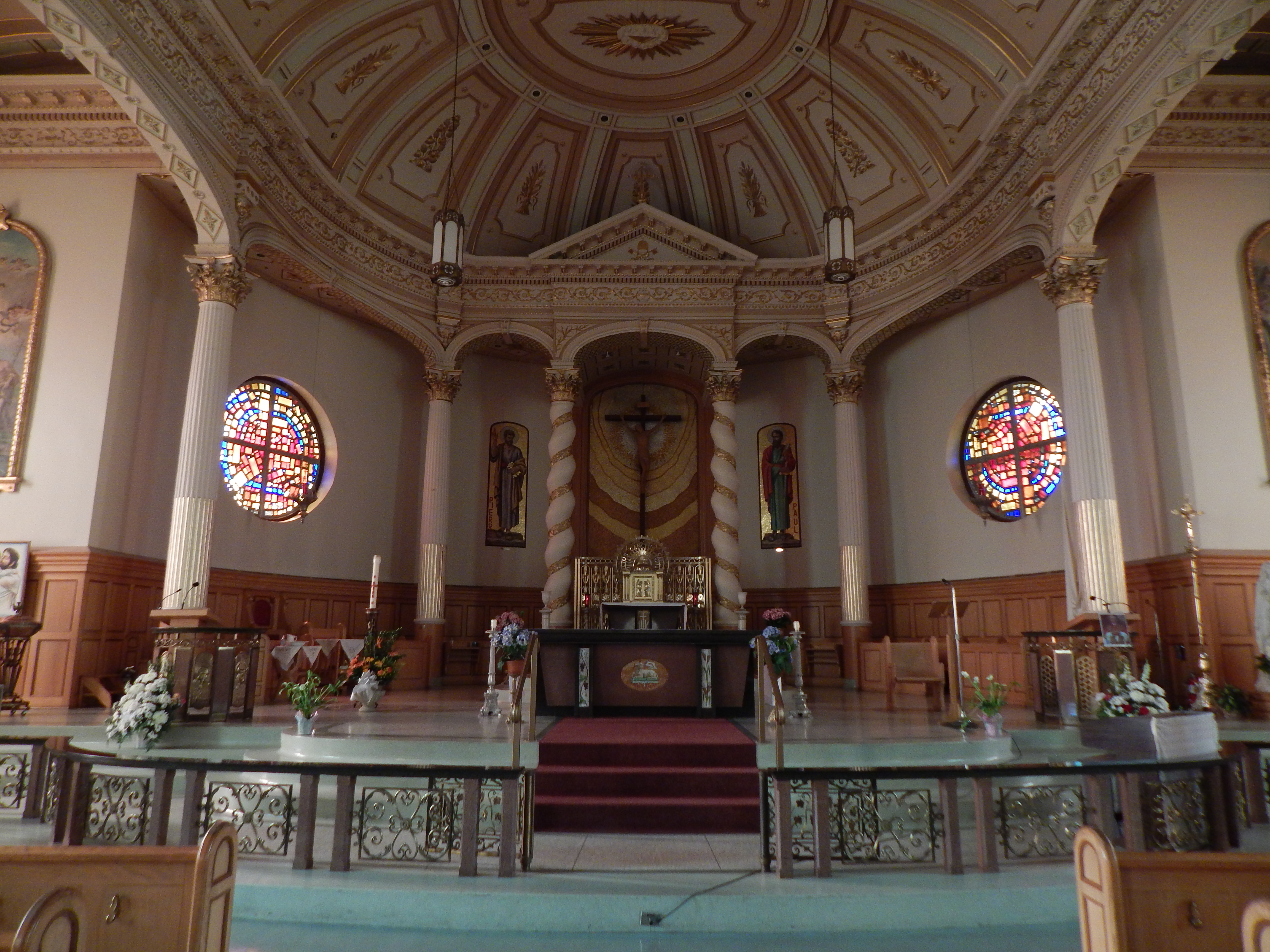- le décor intérieur, dont la fausse voûte à arc surbaissé du vaisseau central et des collatéraux (ornée de caissons et de gloires), le retable du choeur (composé de colonnes torses surmontées d'un fronton encadrant un tabernacle doré, une mosaïque et un crucifix), la colonnade corinthienne du choeur portant un entablement richement orné se prolongeant dans la nef et séparant le vaisseau central et les collatéraux, la tribune arrière logeant l'orgue Casavant, les motifs dorés, les éléments peints, la table de communion, les vitraux et les mosaïques du choeur.