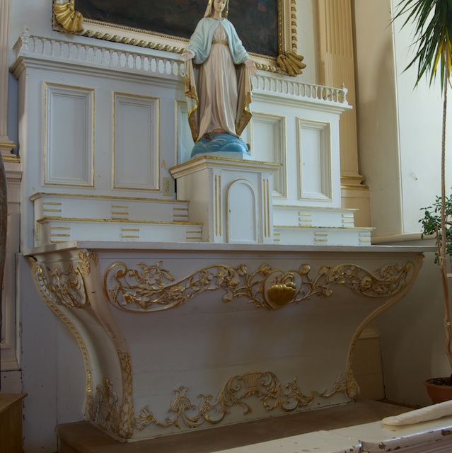 Autels dédiés à la Vierge Marie et à Saint-Joseph. Les travaux de sculpture de l'église sont réalisés par Georges Finsterer (1747-1839). Le curé de la paroisse acquiert un autel latéral en 1811. Les livres de comptes de 1812 permettent de savoir que le curé de l'église acquiert auprès du sculpteur Louis-Daniel Finsterer (1791-1849) un autel et un tabernacle. Finsterer aurait aussi réparé un autre autel. Le tout pour un total de 700 livres. Ainsi, il existe une ambiguïté à savoir lequel des autels latéraux a été sculpté par Louis-Daniel Fensterer.