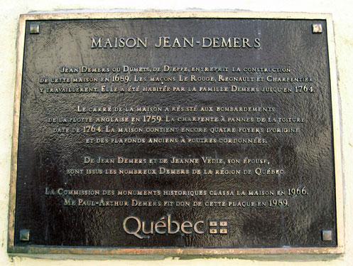 Plaque de la maison Jean-Demers
