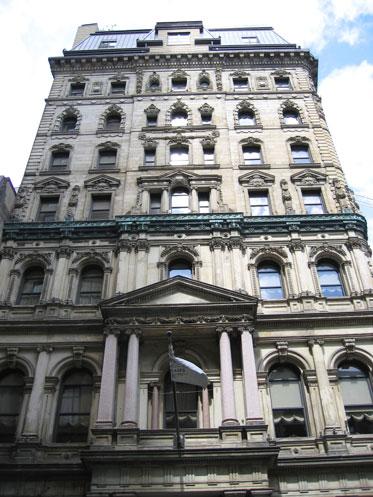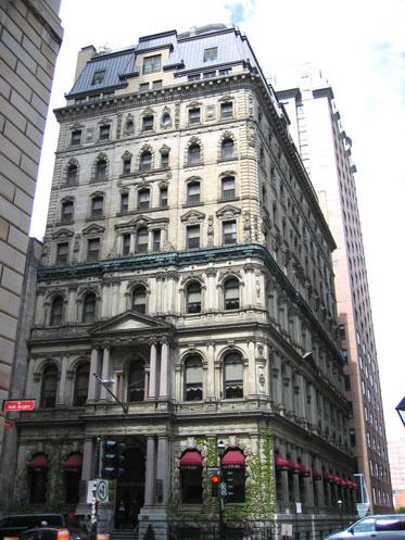 Le nouvel édifice, conçu par les architectes Hopkins et Wily, est construit de 1870 à 1873. Jusqu'à la fin du XIXe siècle, la Merchants' Bank occupe seule tout le bâtiment de quatre étages à toit mansardé. En 1899, sous la direction de l'architecte Edward Maxwell, la banque ajoute quatre étages au bâtiment initial, et loue des bureaux à diverses entreprises, dont l'agence de détectives Pinkerton.