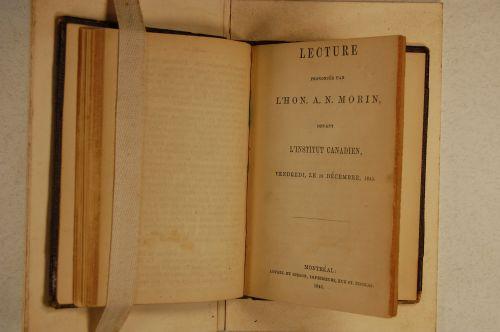 Livre (Lecture prononcée par l'Hon. A.N. Morin, devant l'Institut canadien, vendredi, le 18 décembre, 1845)
