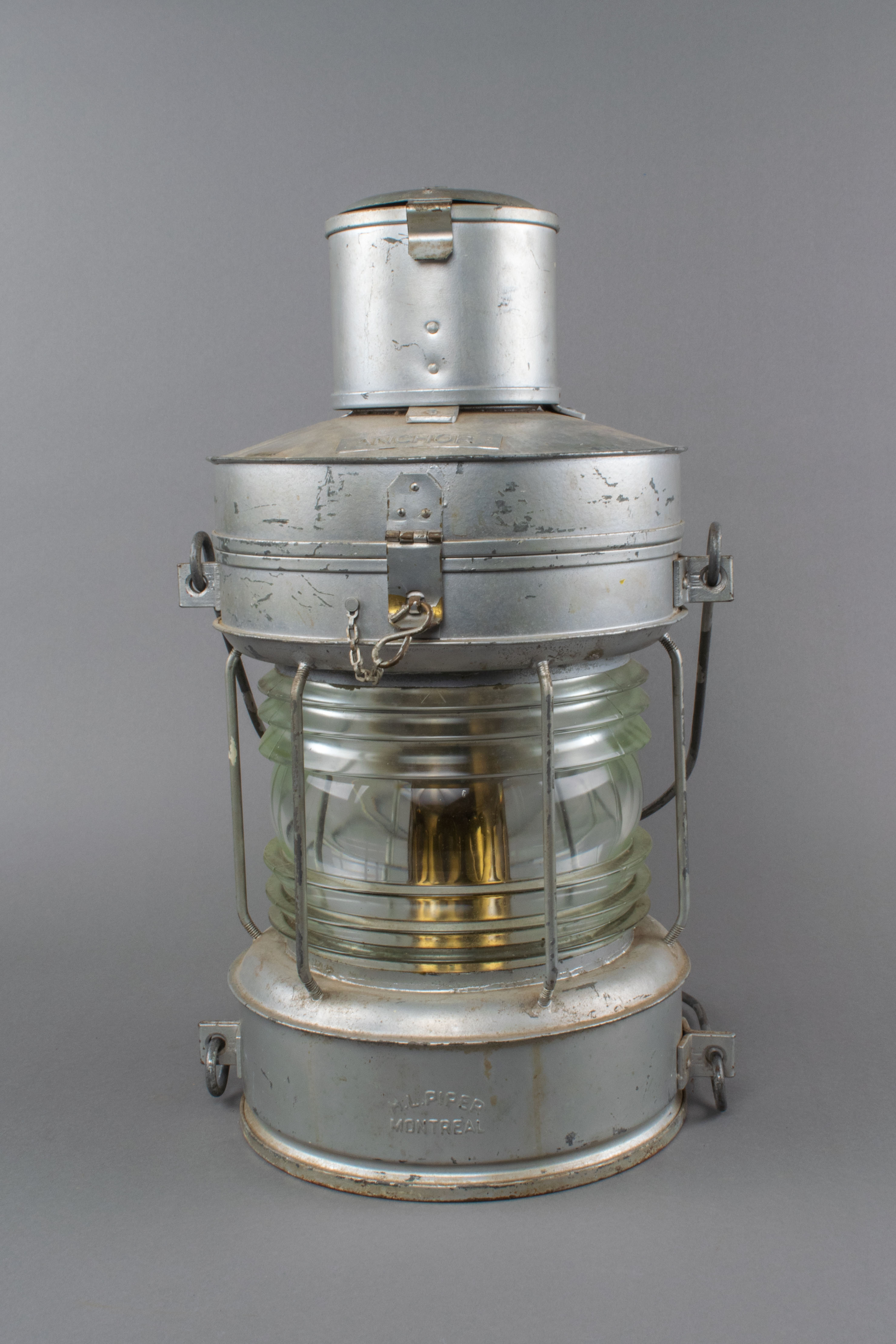 Ce feu de mouillage a été fabriqué par la compagnie H.L. Piper de Montréal. Émettant une lumière blanche visible sur 360 degrés, ce feu de navigation est hissé en haut de la mâture lorsque le navire se trouve à l'ancre la nuit.