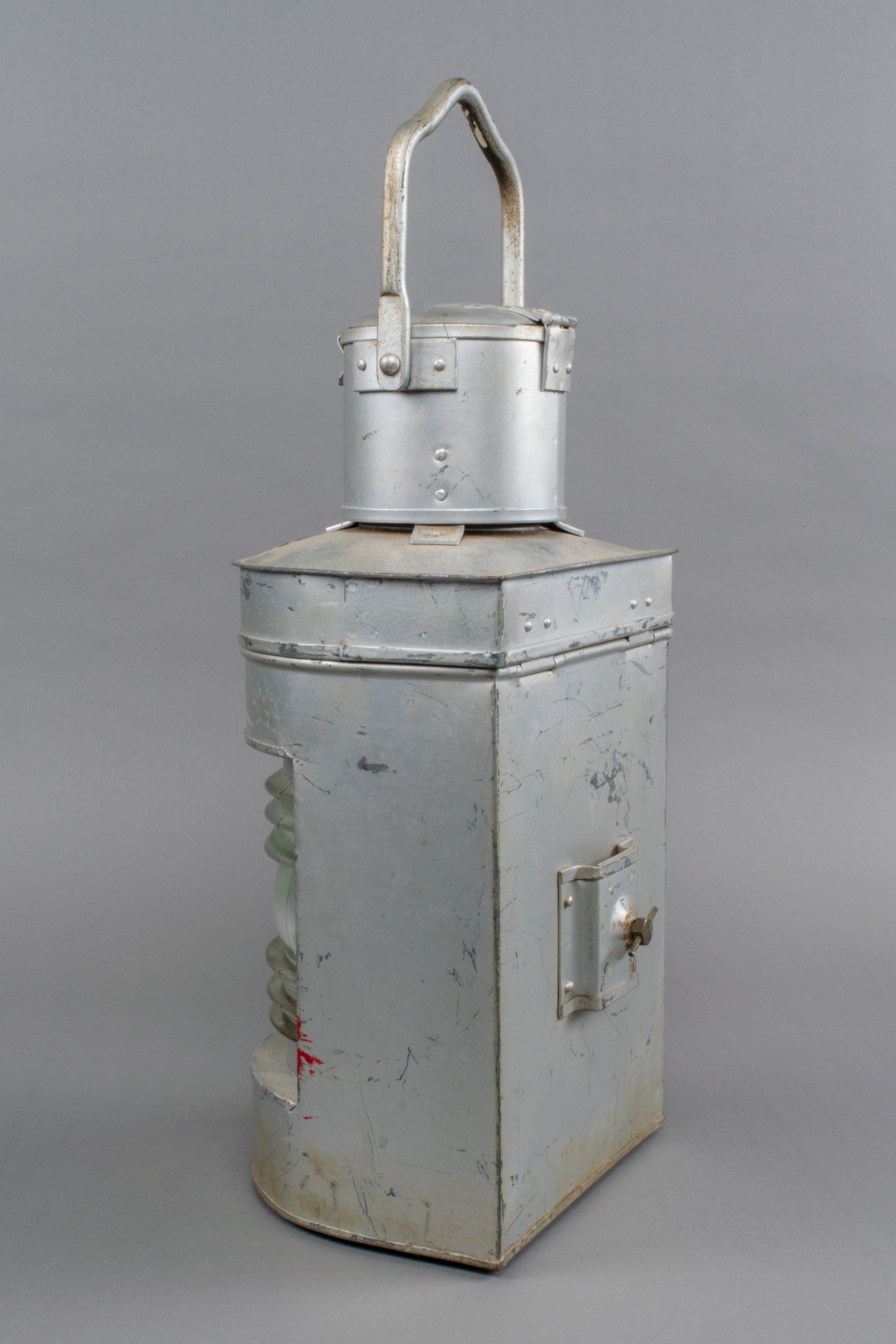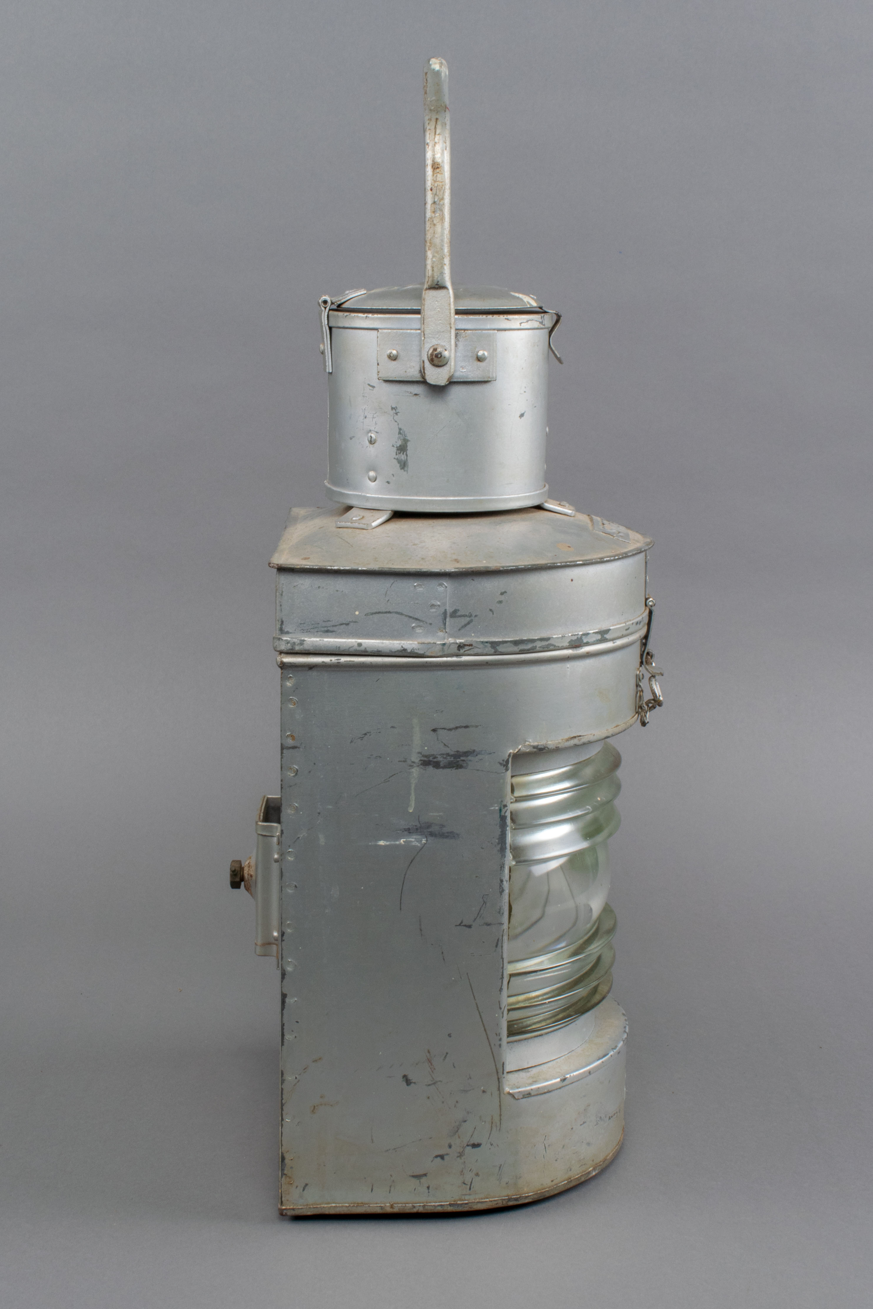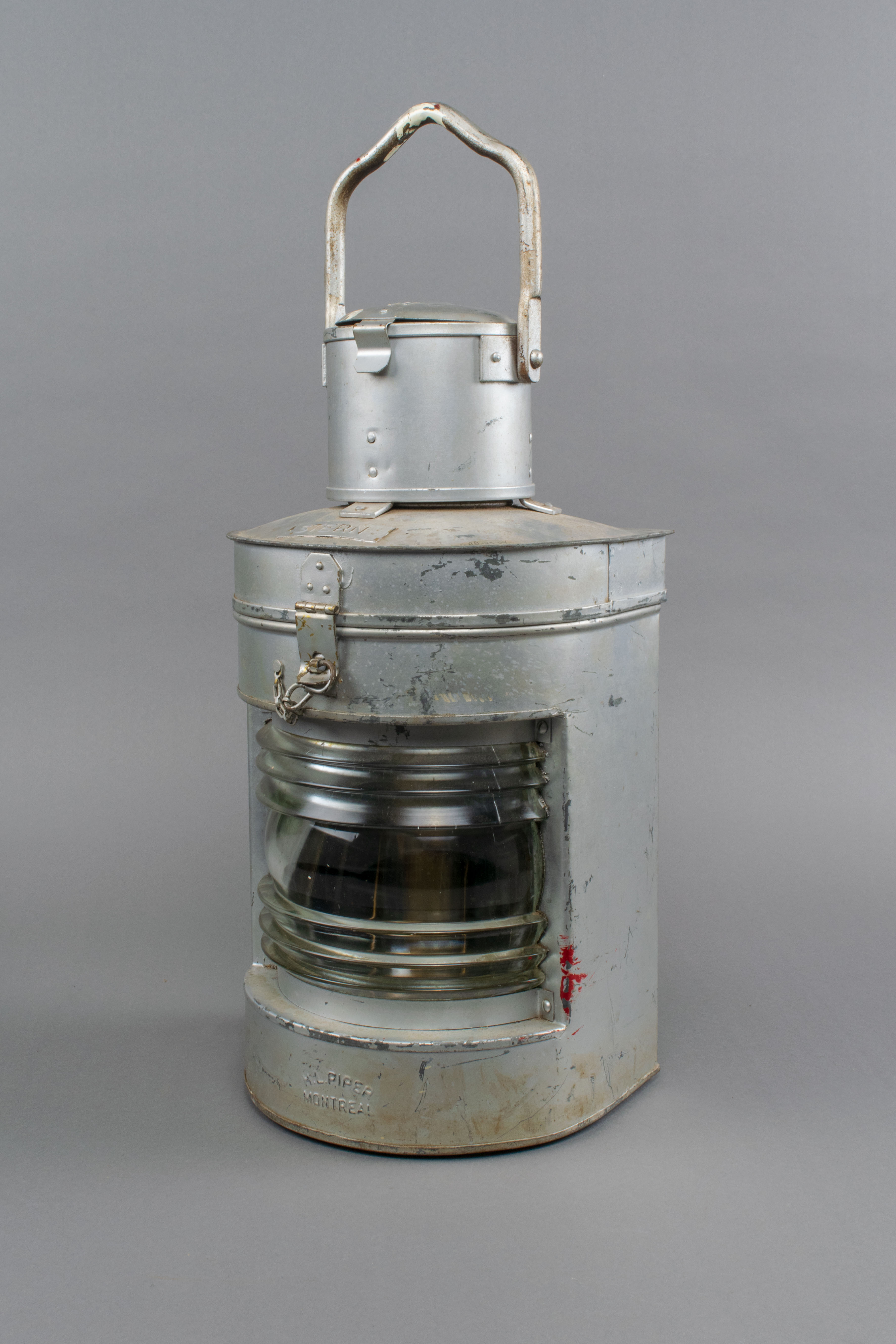Ce feu de navigation arrière blanc a été fabriqué entre 1875 et 1900 par la compagnie H.L. Piper de Montréal. Ce feu de poupe projette une lumière blanche ininterrompue sur un arc d'horizon de 135 degrés. Il possède une poignée amovible permettant de le transporter ou de le hisser.