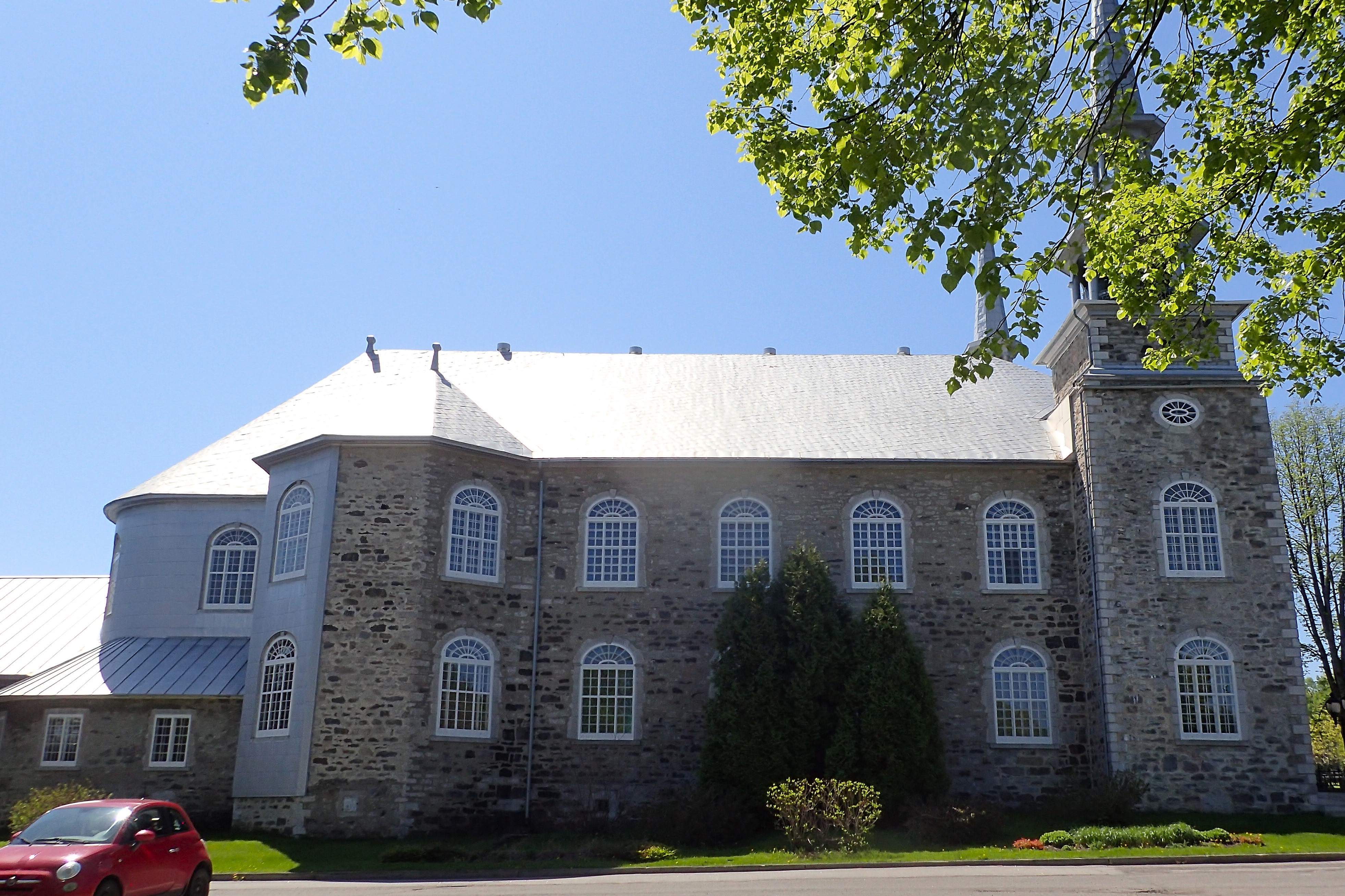 - les matériaux, dont la maçonnerie de moellons de l'église, de la sacristie et du chemin couvert, l'annexe en bois, la couverture en tôle à la canadienne de l'église, la couverture en tôle à baguettes de la sacristie, du chemin couvert et de l'annexe ainsi que les ouvertures en bois;