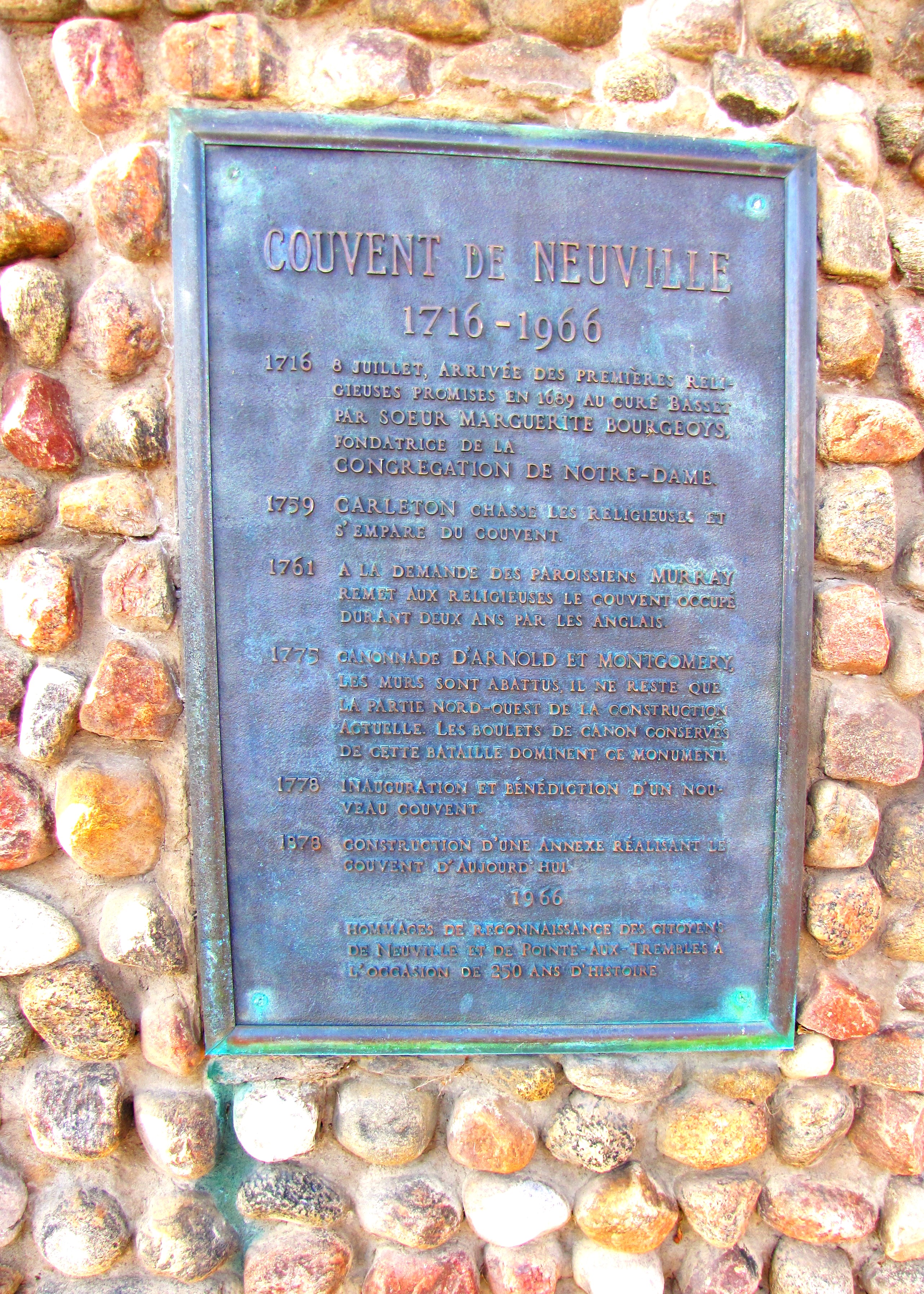 À la fin du XVIIe siècle, le curé Basset, premier curé de la toute jeune paroisse de Neuville, demande à Marguerite Bourgeoys, fondatrice de la Congrégation Notre-Dame, de créer une école dans sa paroisse.